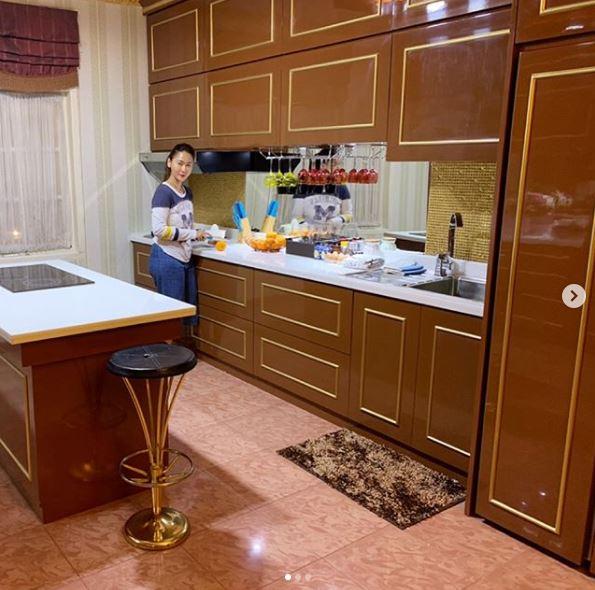 4. Dapur lain di rumah Inul Daratista yang juga bernuansa cokelat dan emas.