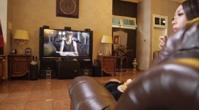 5. Tampak sebuah ruangan yang dilengkapi televisi cukup besar untuk bersantai bersama keluarga.